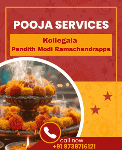 Pooja services play a crucial role in attracting positive energy, removing obstacles, and ensuring peace and prosperity in life. Kollegala Pandith Modi Ramachandrappa offers expert pooja services tailored to individual needs, including Maha Ganapati Homa for wisdom and success, Navagraha Homa to balance planetary influences, and Dhanvantari Homa for health and well-being. These rituals, performed with sacred mantras like "Om Gan Ganapataye Namah" (for wisdom and obstacle removal) and "Om Namo Bhagavate Vasudevaya" (for divine blessings and spiritual growth), bring harmony and prosperity. For those experiencing negativity, financial struggles, or personal hardships, specialized poojas like Sudarshana Homa for protection ("Om Sudarshanaya Vidmahe Mahajvalaya Dheemahi Tanno Chakra Prachodayat") and Durga Pooja for strength ("Om Dum Durgayei Namah") help remove blockages and restore balance. Kollegala Pandith Modi Ramachandrappa ensures that each ritual follows authentic Vedic traditions for powerful and long-lasting results. Whether seeking spiritual growth, relief from difficulties, or divine blessings, his Pooja services provide a transformative path to a fulfilling life. Powerful mantra-based homams like "Om Aim Hreem Kleem Chamundaye Vichche" (for protection and success) and "Om Shreem Hreem Kleem Maha Lakshmiyai Namah" (for wealth and prosperity) amplify positive energy and open doors to success. With expert guidance, these poojas help individuals overcome hurdles, strengthen their spiritual connection, and invite divine grace into their lives.
